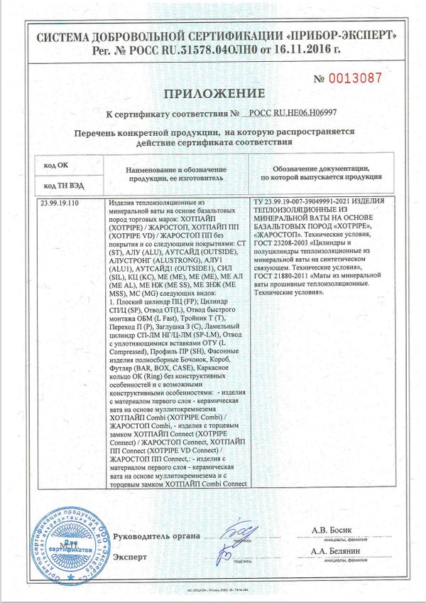 | Назначение | Для теплоизоляции трубопроводов, когда ГОСТ необходим по проекту |